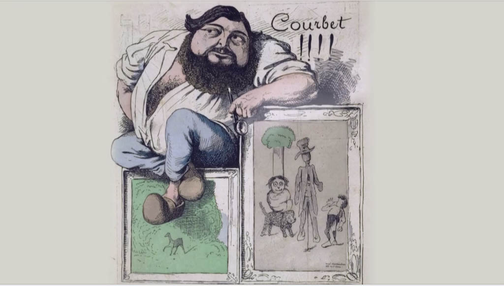 Mais retenons l’expression Courbet sans courbettes, jeu de mots signature, qui frise la prétérition lorsqu’il s’adresse avec force flagorneries envers Hugo, mais qui révèle tout de même une attitude d’indépendance et d’irrévérence qui caractérisa toute la vie du peintre. Et qui nous tient, du moins me tient, lieu de modèle. Je suis ces temps-ci tellement imprégné de Courbet que je le vois partout – je m’efforce de repérer et saluer sa présence et son actualité, tout en évitant la vénération du fanboy.