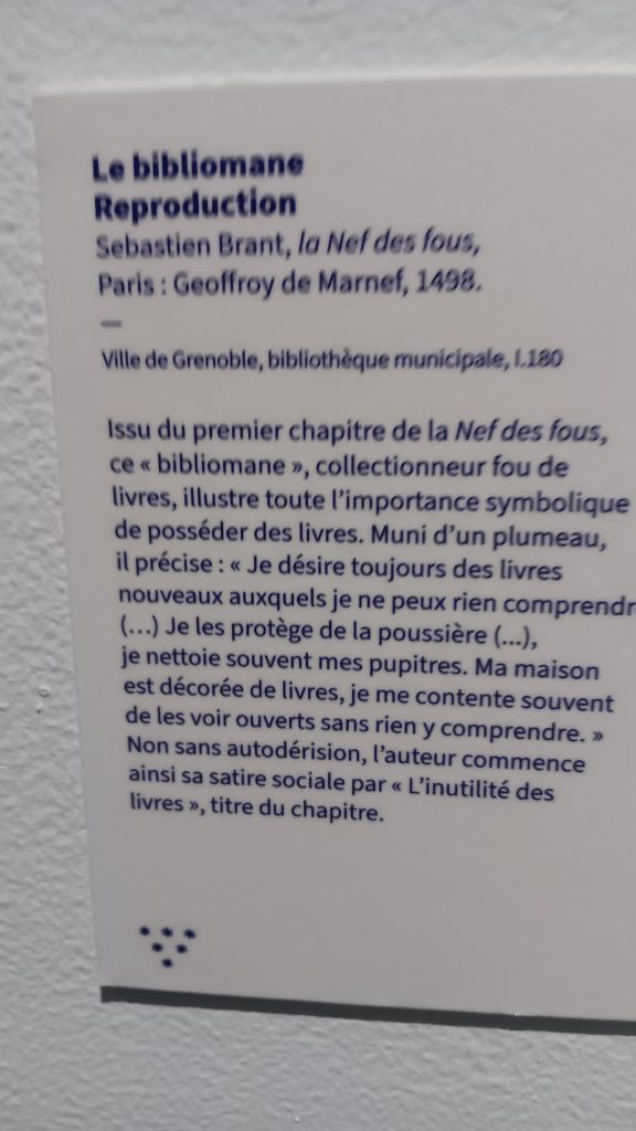 Le Bibliomane ainsi que bien d’autres merveilles sont à admirer en ce moment à la Bibliothèque d’étude et du patrimoine de Grenoble, qui expose ses incunables jusqu’en mars 2026.